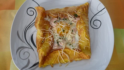 Bretaňské galettes, plněné vejcem, šunkou a sýrem
