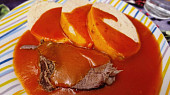 Krok 7: Omáčku podáváme s plátky masa a houskovými knedlíky.