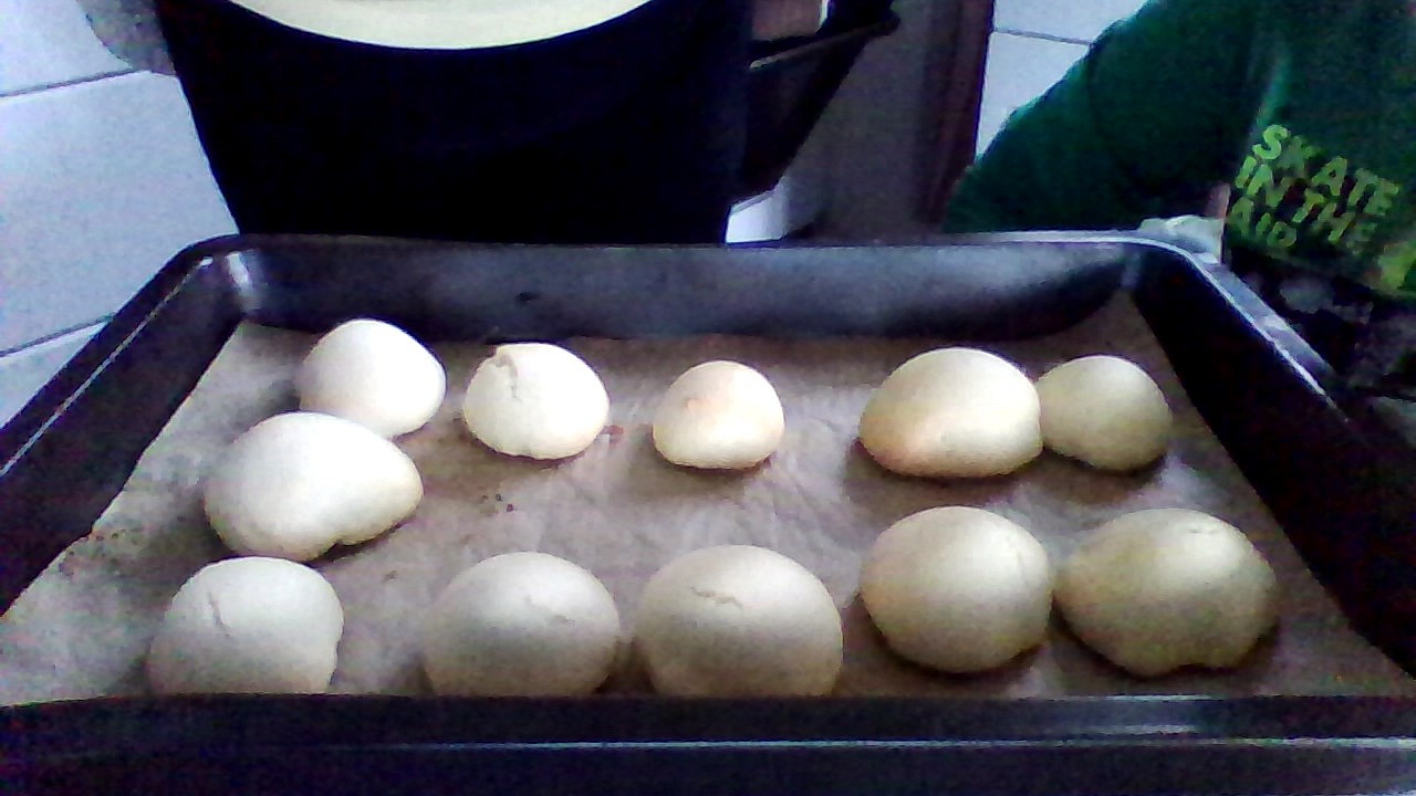 Potom přidejte 2 vejce a míchejte, dokud z toho nevznikne trošku lepkavé těsto. Krok 2: Nyní si vezměte rukavice a namočte je, protože bez mokrých rukavic se vám to bude lepit na ruce. Z těsta vytvarujte kuličky (8-12 ks, podle velikosti). Krok 3: Předehřejte troubu na 200 °C, plech vyložte pečicím papírem a pečte cca 10 minut.