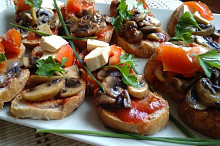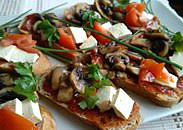 Obložené bagety s restovanými žampiony a rajčatovým pyré