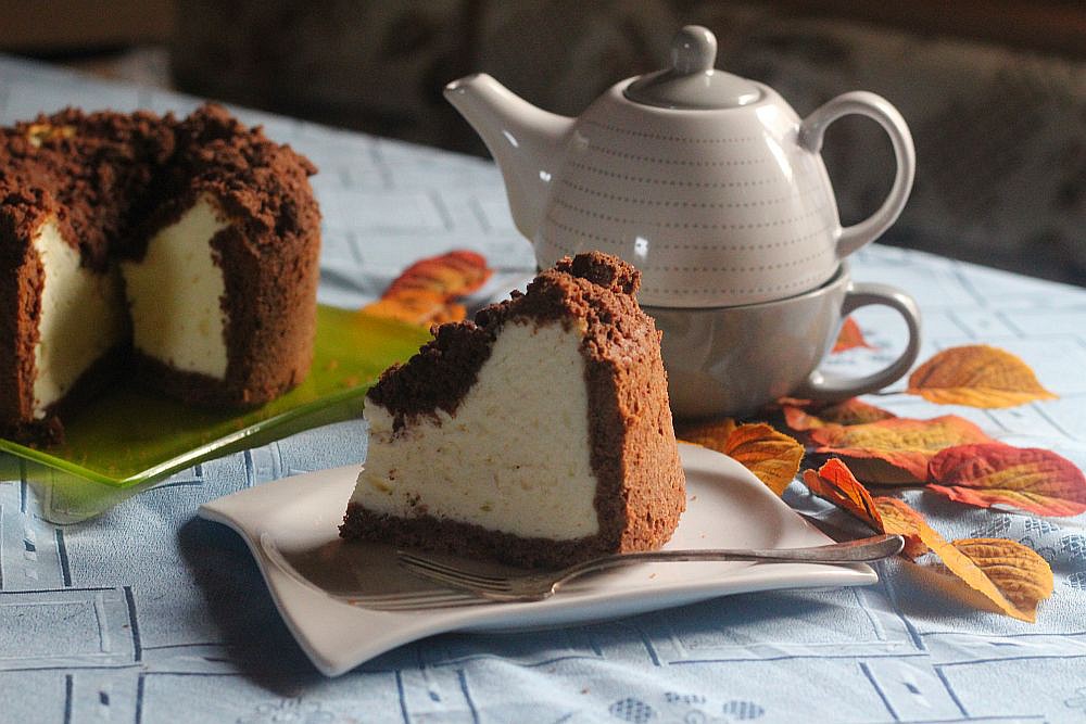 Na náplň rozmícháme žloutky s cukrem, škrobem a rumem, pak přimícháme tvaroh a nakonec tuhý sníh, který ušleháme z bílků.