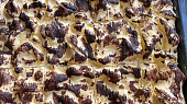 Krok 5: Mezitím připravíme krém-mléko dáme vařit s hladkou moukou, necháme vychladit, přidáme cukry, máslo, rum a vyšleháme. Potřeme vychladlou placku, zakryjeme druhou plackou a polejeme polevou-kaštany s tukem rozehřejeme ve vodní lázni.