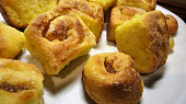 Krok 5: Necháme ještě asi 20 minut kynout (než se předehřeje trouba) a pak pečeme v troubě vyhřáté na 170 °C asi 30 minut dozlatova. Horké upečené buchty na plechu pomašlujeme rozpuštěným máslem s rumem a pocukrujeme.