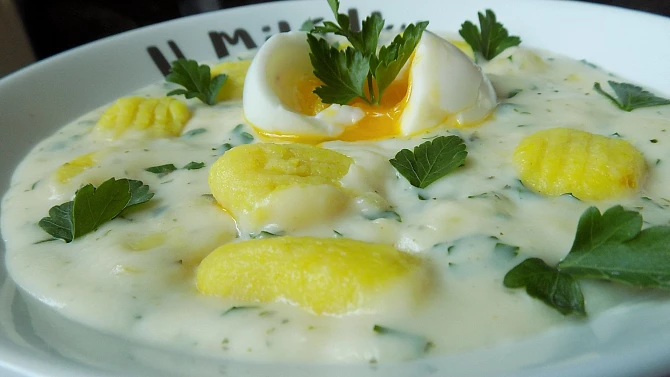 Vhazujeme do vroucí osolené vody a vaříme asi 3 minuty. Až vyplavou, jsou hotové a scedíme je. Krok 2: Na omáčku rozpustíme máslo a necháme zpěnit drobně nakrájenou cibuli a česnek. Přidáme mouku, orestujeme a zalijeme vývarem. Necháme povařit asi 10-15 minut. Mícháme, před koncem vlijeme smetanu, přidáme petrželku a vaříme už jen chvíli. Dochutíme solí a pepřem. Krok 3: Na talíř dáme nočky, zalijeme omáčkou a můžeme podávat jen tak, s vařeným vejcem anebo s vařeným hovězím masem z polévky.