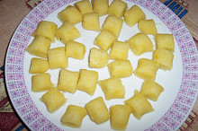 nočky s cibulkou, špenátem a kuřecím masem na kmíně