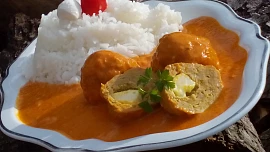 Vepřové nudličky v pikantní omáčce s houbami a sýrem