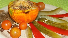 Pečené brambory s dýni, masovými kuličkami a mozzarellou