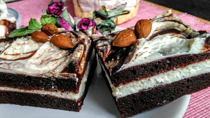 kakaový korpus dezert s tvarohem a šlehačkou,