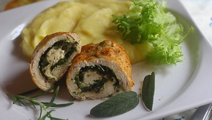 Plátky masa lehce naklepeme, osolíme, opepříme a potřeme bylinkovou směsí.