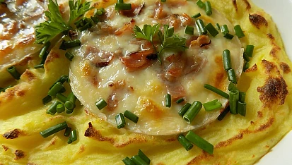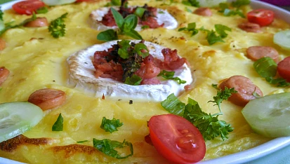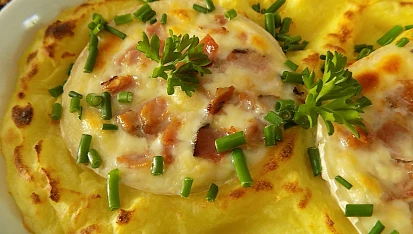 Zapečená bramborová kaše s Hermelínem a slaninou