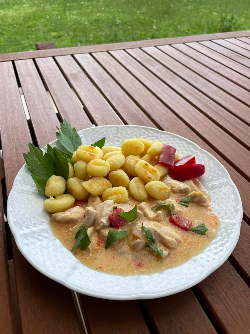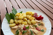 Kuřecí nudličky v jogurtové omáčce s křupavými gnocchi