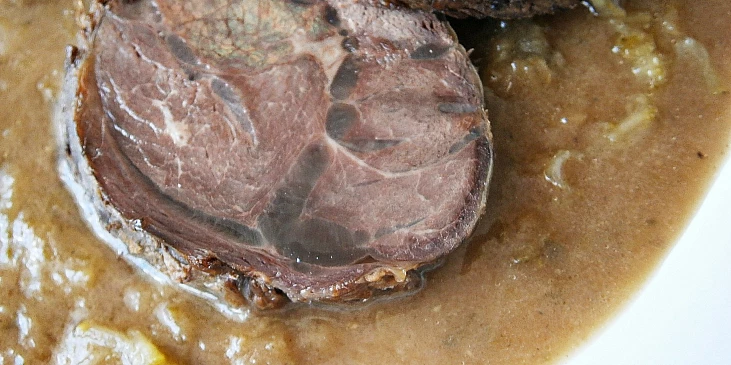 Hovězí kližka na cuketě a okurkách z pomalého hrnce