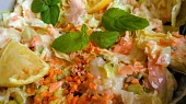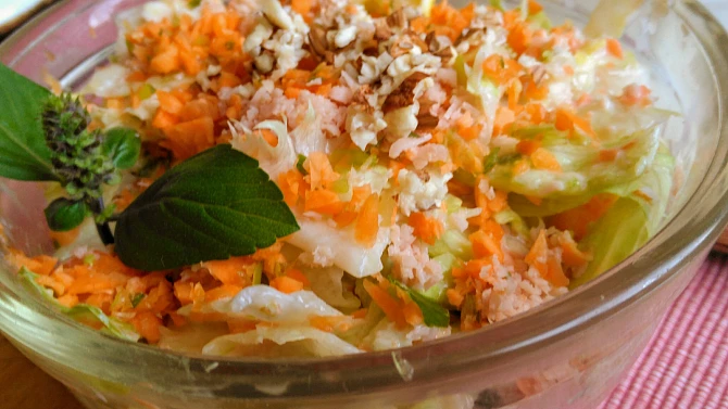 Svěží ledový salát se šunkou, mrkví, kefírem a oříšky