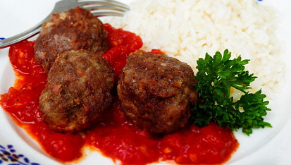Knedlíčky podáváme na podušených rajčatech, s rýží nebo opečenými brambory.