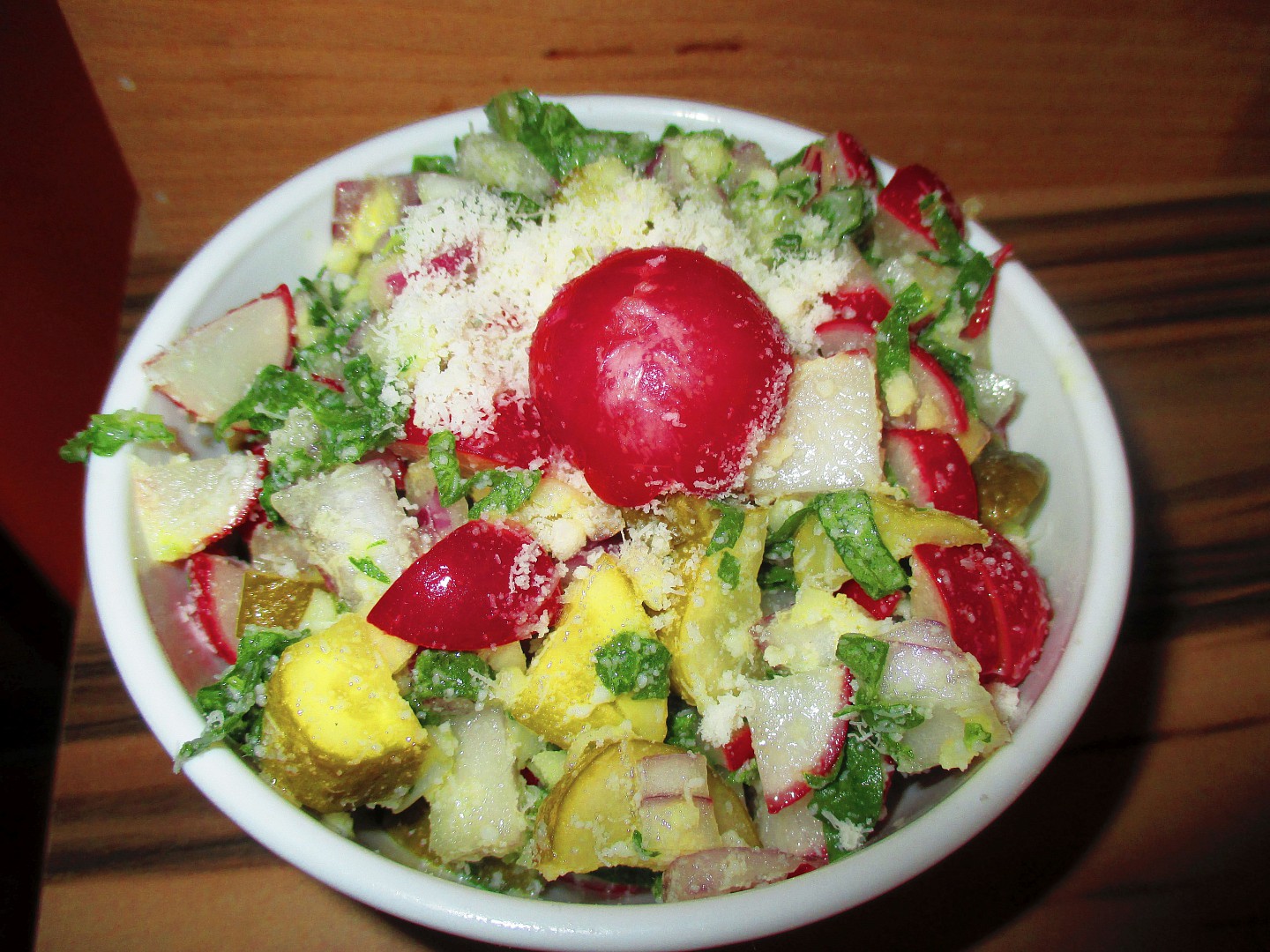 Ředkvičky omyjeme a nakrájíme na kousky. Na kousky nakrájíme také okurky a červenou cibuli. Krok 3: Vše dáme do misky, osolíme, opepříme a promícháme. Krok 4: Zakápneme olivovým olejem, limetkovou šťávou a posypeme parmezánem.