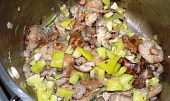 Krok 2: Pridáme klobúčiky podpňoviek, osolíme, okoreníme, pridáme nasekaný zázvor, papriku, rascu a dusíme 20 minút.