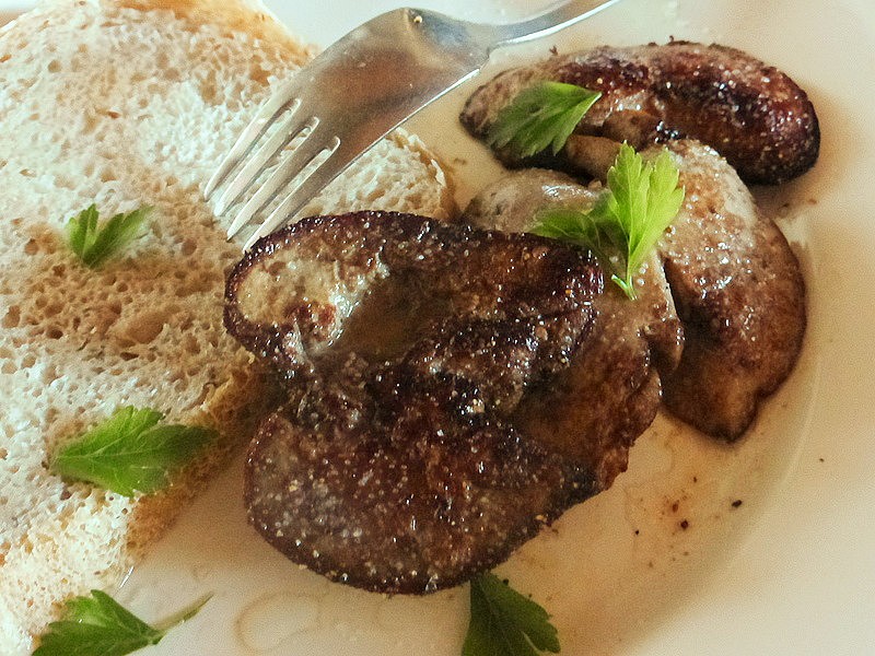 smažená králičí játra,