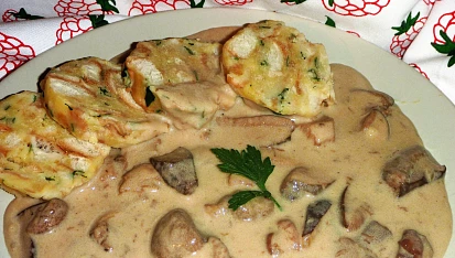 Jemná a krémová houbová omáčka je zahuštěná smetanou a troškou mouky a dochucená jen solí a pepřem. Díky tomu vynikne pravá chuť a vůně hub. Hotovou omáčku podáváme s brambory a zastřenými vejci.