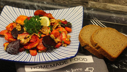 Podzimní teplý salát z kořenové zeleniny s ořechy