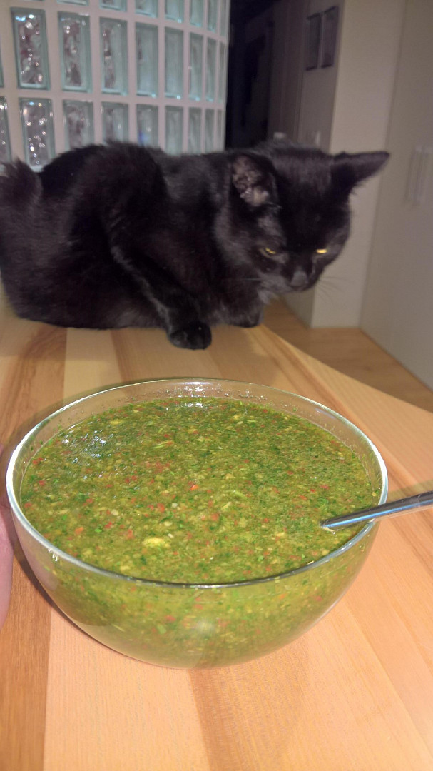 Tato verze omáčky je velmi pálivá, díky papričkám habanero. Pálivost i barevnost upravte svým zvyklostem. Omáčka má široké použití - k marinování mořských plodů, ryb a masa, výborná k dochucení salátů nebo jako dip. Dlouhá tepelná úprava jí nesvědčí, ztrácí na chuti, především koriandr (nikoli na palčivosti).