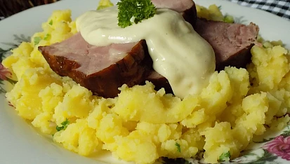 uzené maso se šťouchanými bramborami,