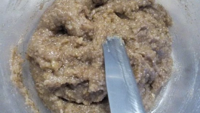 Krok 4: Na náplň smícháme mleté ořechy s džemem, cukrem a rumem.