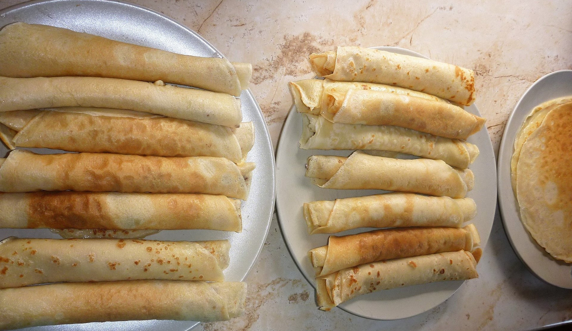 Francouzská palačinka ozdobená šlehačkou a topingem