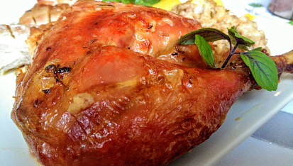 Krůta pečená s bůčkem, plněná nádivkou s bylinkami