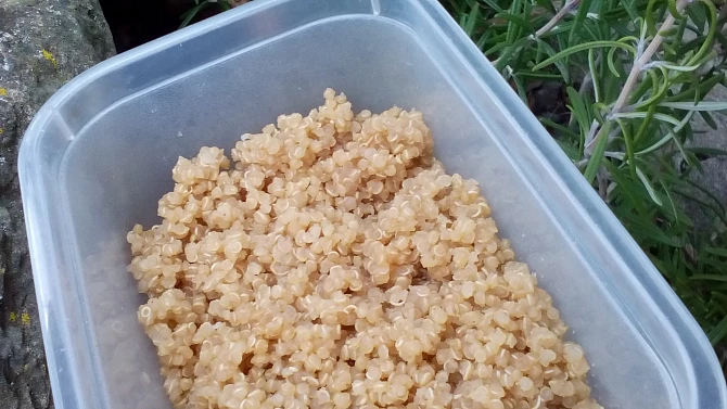 Krok 1: Nejprve quinou nasypeme do misky a zalijeme na cca 5 -10 minut studenou vodou, ta pomůže zbavit se případné hořkosti.