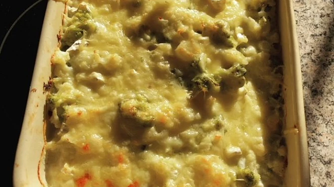 Zapečený květák s brokolicí a dvěma druhy sýru podle Eduarda