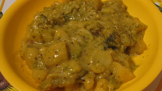 brambory s uzeným bokem a brokolicí trouby stupňů,
