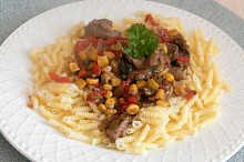 Těstoviny s kuřecím masem na kari