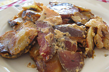 Domů - Recepty - Brambory zapečené s červenou řepou a brynzou