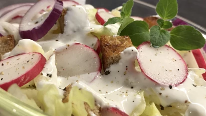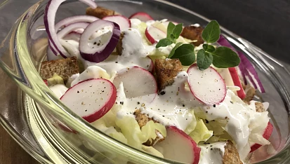 Ledový salát s ředkvičkami, smetanovou zálivkou a krutony