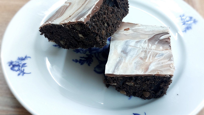 Krok 1: Všechny suroviny smícháme. Těsto nalijeme na vymazaný a vysypaný plech.