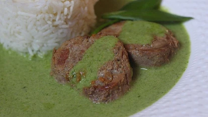 Hotové odložíme stranou a uchováme v teple. Krok 2: Do pánve po mase vhodíme nasekané šalotky, necháme je zesklovatět a zastříkneme vínem. Když se víno odpaří, zalijeme asi půl šálkem horké vody a přidáme nahrubo nasekaný medvědí česnek. Necháme pár minut podusit, pak vše rozmixujeme a znovu přivedeme k varu.