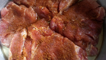 Krok 1: Maso naklepeme, osolíme, opepříme, posypeme paprikou s kmínem a dáme do remosky o průměru cca 24 cm vymazané olejem nebo sádlem.