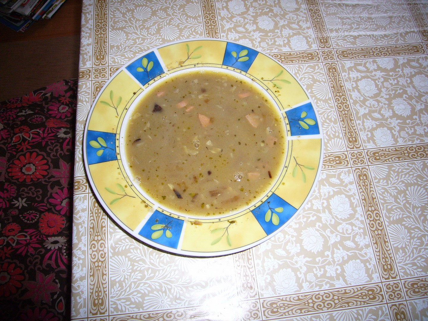 polévka s uzeným masem,