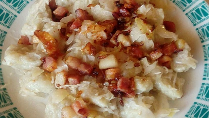 Vaříme tak dlouho, až nočky vyplavou na povrch. Podle potřeby můžeme dobu varu prodloužit. Uvařené propláchneme studenou vodou. Krok 2: Zelí uvaříme a dochutíme cukrem, solí a octem. Uzeninu a cibuli nakrájíme na kostičky, okmínujeme a na oleji opečeme dozlatova. Krok 3: Nočky promícháme se zelím a na talíři posypeme osmaženou uzeninou a cibulí.