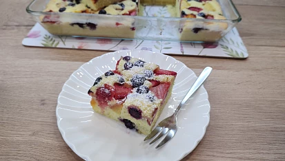 Krok 11: Hotový koláč necháme vychladnout, pokrájíme na menší kousky a před podáváním pocukrujeme moučkovým cukrem s vanilkou.
