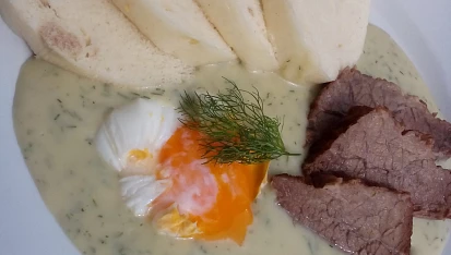Krok 3: Podáváme s houskovým knedlíkem nebo bramborem, vařeným vejcem dle vlastní chuti nebo plátkem vařeného hovězího masa.