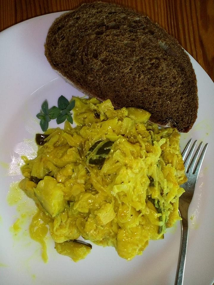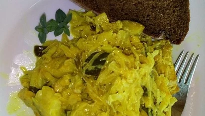 Kuřecí kousky s cuketou a kysaným zelím na curry