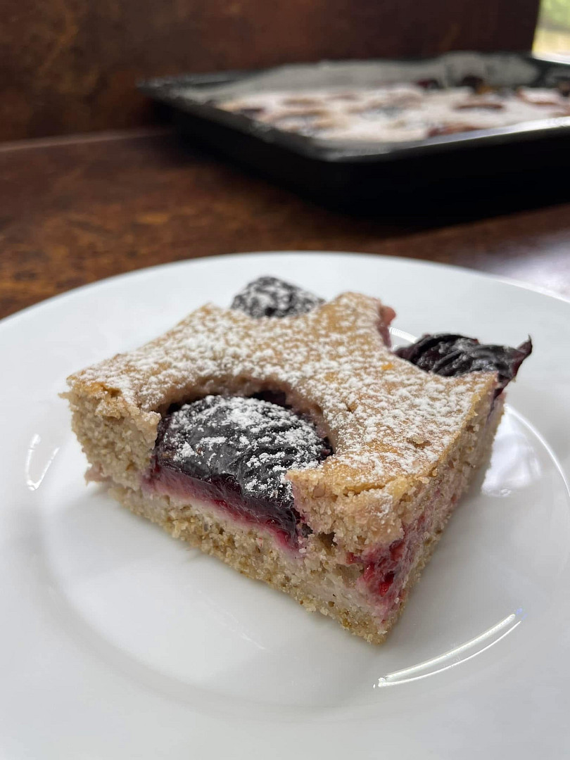 Ořechovo-krupičkový koláč se švestkami
