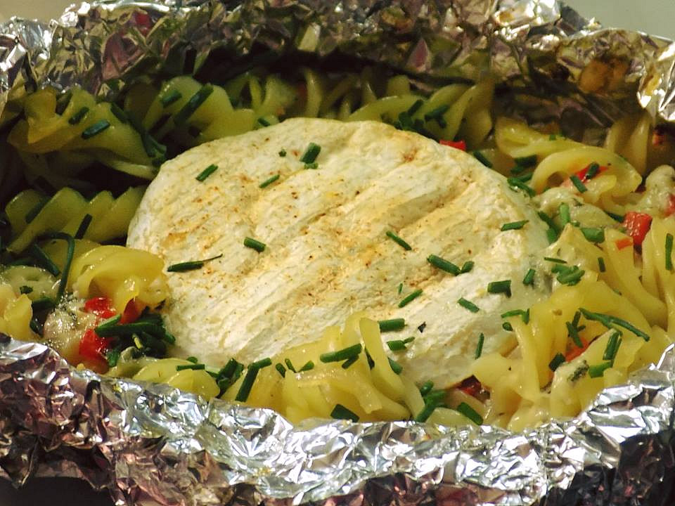 Zapečené jednoporcové těstoviny se sýrem v alobalu