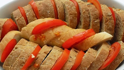 zapečená rajcaty z chlebem,