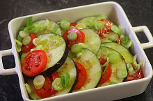 Lilek s rajčaty zapékaný s balkánským sýrem