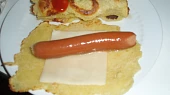 buď použijeme těsto ze sáčku nebo vezmeme 3 uvařené vychladlé brambory, kolik váží tolik tam přidáme hrubé mouky + jedno vejce, osolíme a vypracujeme těsto. Krok 2: Rozdělíme na 3 menší hromádky a vyválíme co nejtenčí placky cca 20 x 20 cm. Krok 3: Dáme opéct na pánev po jedné straně, obrátíme, položíme na střed plátek sýra, placku vyndáme, na střed položíme párek, pokapeme kečupem a svineme v roličku, tu pomažeme rozpuštěným máslem. Krok 4: Dáme na talíř a ozdobíme petrželkou.