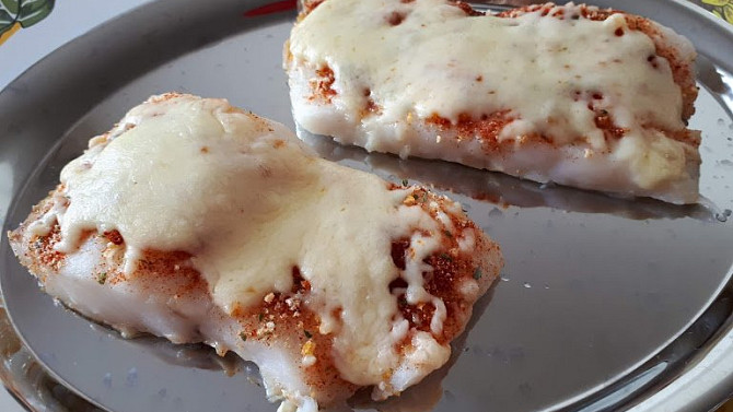 Filety z tresky nebo hejka dochutíme paprikou, sušeným medvědím česnekem a kukuřičnou strouhankou. Rybu krátce upečeme v troubě a na závěr ji posypeme sýrem, který necháme zapéct. Podáváme s bramborami nebo zeleninovým salátem.