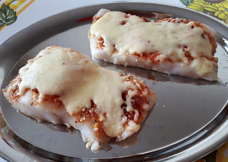 treska v sýrovém přelivu,
