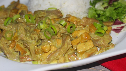 Hlívu natrháme nebo nakrájíme na proužky, přihodíme k cibuli a chvilku podusíme. Krok 3: Po chvíli přidáme i odleželé tofu, zastříkneme vínem a přidáme několik strouhnutí muškátového oříšku.